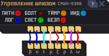 Интерфейс взлома представляет собой набор проводов с контактами и индикаторами.